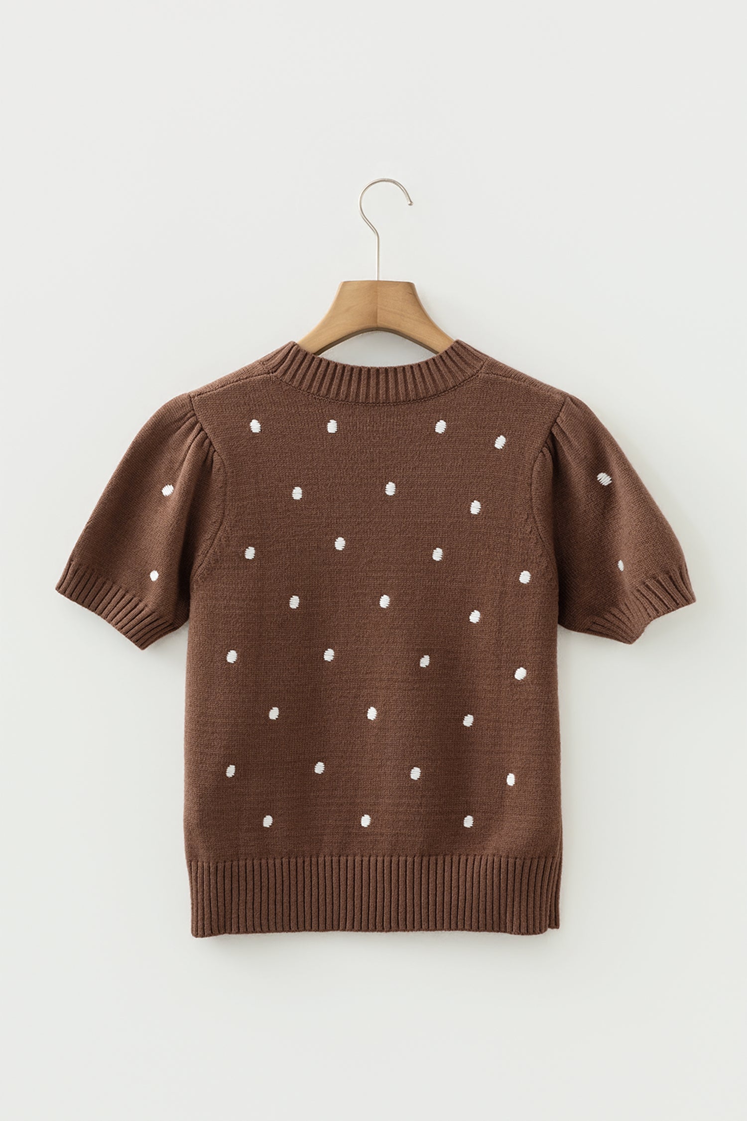 Chestnut Elegant Polka Dot Bubble Short Sleeve Sweater
